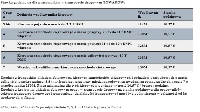 Zmiana płacy minimalnej dla transportu